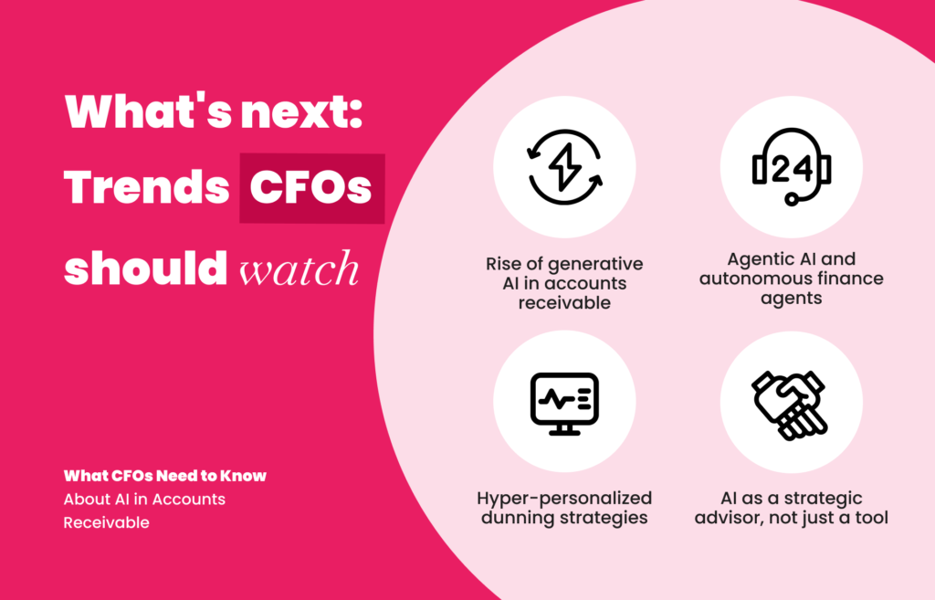 Q5. What future trends should CFOs watch in AI-powered accounts receivable? Emerging trends include generative AI for personalized communications, autonomous finance agents for routine tasks, hyper-personalized dunning strategies, and AI evolving into a strategic advisor role beyond just an operational tool.