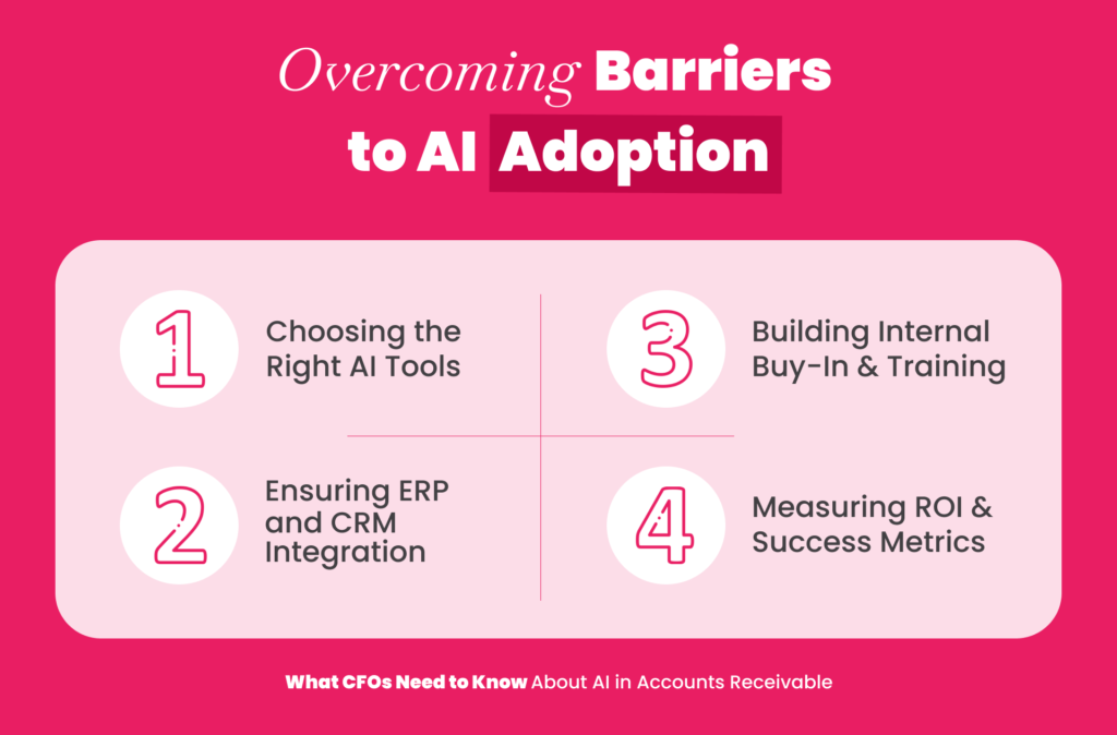 AI adoption in accounts receivable presents challenges that require strategic planning. The benefits are compelling, but successful implementation depends on addressing several key barriers effectively.