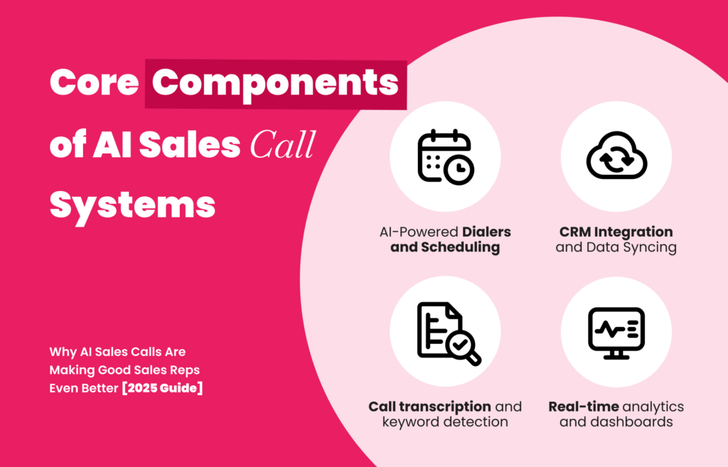 AI sales call systems typically include features like AI-powered dialers, CRM integration, call transcription, keyword detection, and real-time analytics dashboards. These components work together to streamline sales operations, provide valuable insights, and enhance overall team performance.