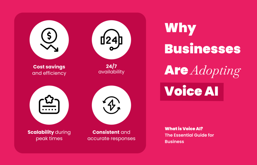 Businesses adopting Voice AI can experience significant cost savings (60-80% reduction compared to traditional call centers), 24/7 availability, improved scalability during peak times, and consistent, accurate responses. It also enhances customer satisfaction by reducing wait times and improving first-call resolution rates.